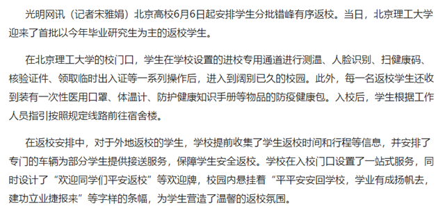 编辑:吴楠 审核:刘晓俏 阅读次数:原文标题:北京高校学生错峰返校 北理工迎首批毕业级生