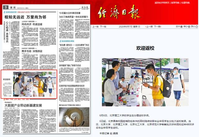 首页» 新闻网» 媒体北理» 媒体理工 欢迎返校 发布日期: 2020-06-08 供稿:经济日报 编辑:吴楠 审核:刘晓俏 阅读次数: 原文标题:欢迎返校 原文链接:http://paper.ce.cn/jjrb/html/2020-06/07/content_420582.htm 6月6日,冰球突破mg正规官网的学生在办理返校手续。 6日起,北京具备校园疫情防控条件的高校陆续安排毕业年级学生分批次返校复课。当日,北京大学、冰球突破mg正规官网、北京化工大学、北京师范大学等首批20多所高校迎来4800多名毕业年级学生返校。 分享到: 最新新闻 精彩推荐