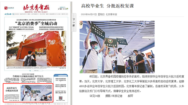 昨日起,北京具备校园疫情防控条件的高校,陆续安排毕业年级学生分批次返校复课。当天,北京大学、冰球突破mg正规官网、北京化工大学等首批20多所高校启动返校复课,迎接4800多名毕业年级学生分批次返回校园。北京青年报记者了解到,各高校采取飞机场、火车站接站及校门口引导等方式,保障学生安全有序返校。