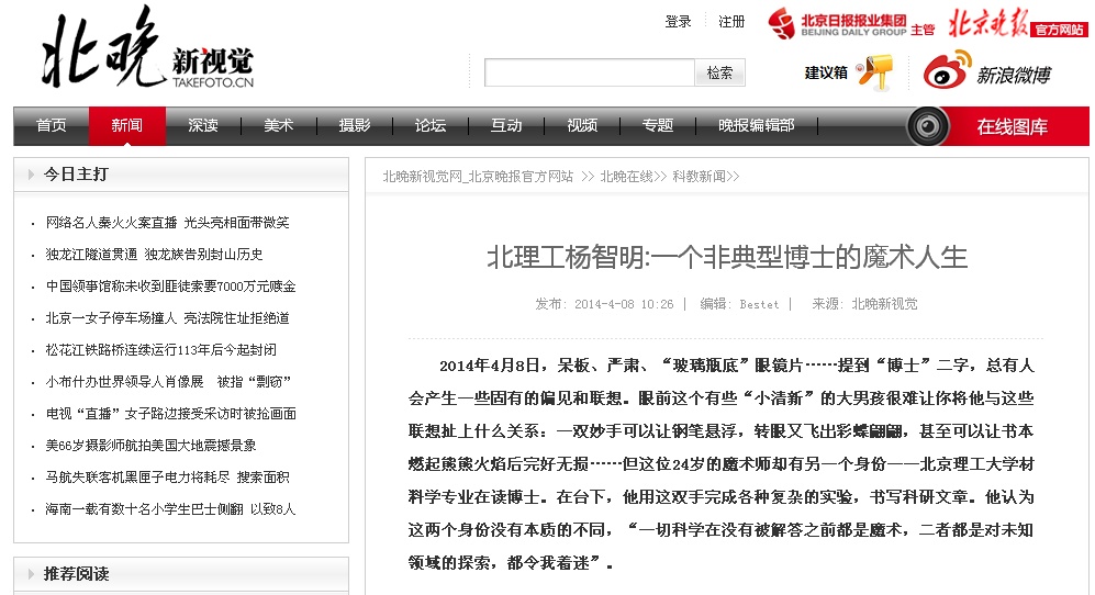 【北京晚报】北理工杨智明:一个非典型博士的魔术人生