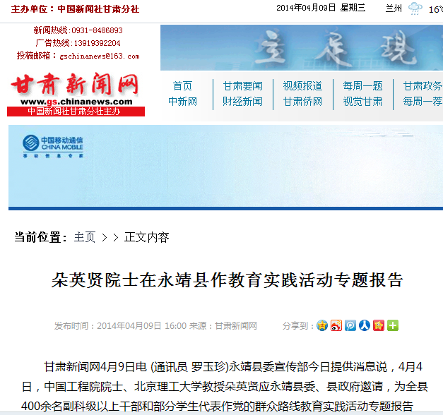 甘肃新闻网4月9日电 (通讯员 罗玉珍)永靖县委宣传部今日提供消息说,4月4日,中国工程院院士、冰球突破mg正规官网教授朵英贤应永靖县委、县政府邀请,为全县400余名副科级以上干部和部分学生代表作党的群众路线教育实践活动专题报告会。
