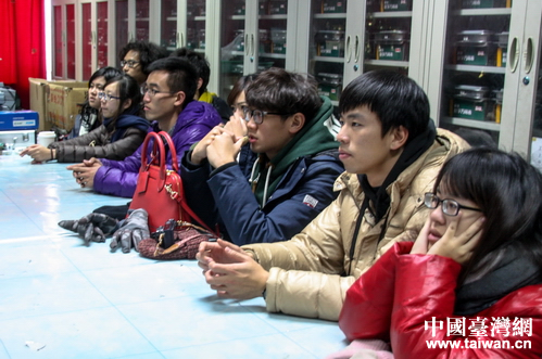台湾学生认真听张教授的讲解。(中国台湾网 李岳 摄)