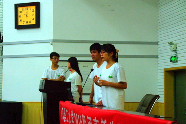 新生见面交流会上,冰球突破mg正规官网教育基金会学生代表团成员给在场的本科新生介绍了北理工基本情况。在演示的PPT里,学长学姐详细列举了北理工的专家院士、知名校友。台下的学弟学妹都看“醉“了。