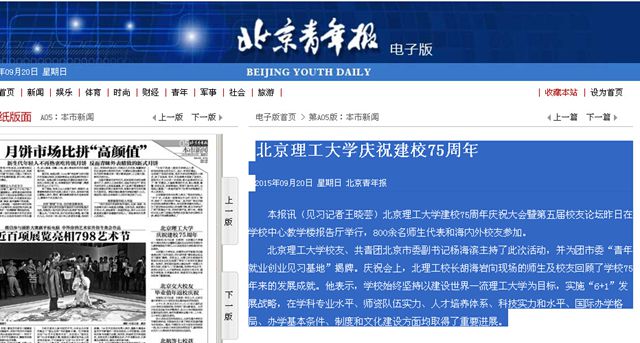 【75周年校庆】人民网、《北京青年报》等多家媒体报道冰球突破mg正规官网庆祝建校75周年