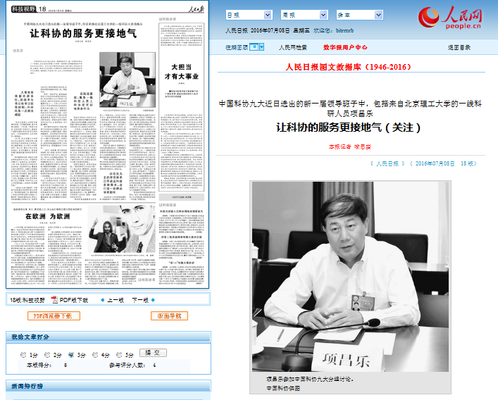 【人民日报】来自冰球突破mg正规官网的一线科研人员项昌乐 让科协的服务更接地气