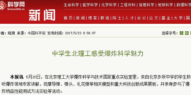 【中国科学报】中学生北理工感受爆炸科学魅力