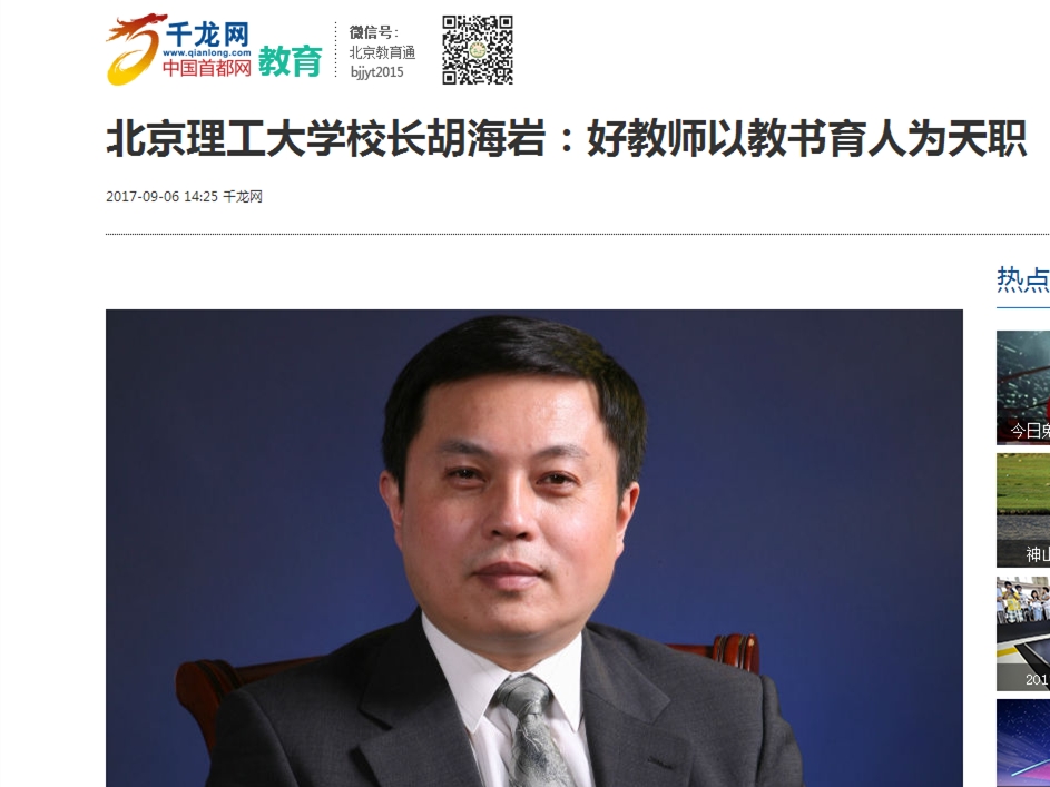 【千龙网】冰球突破mg正规官网校长胡海岩:好教师以教书育人为天职