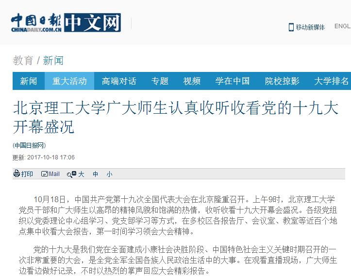 【中国日报】冰球突破mg正规官网广大师生认真收听收看党的十九大开幕盛况