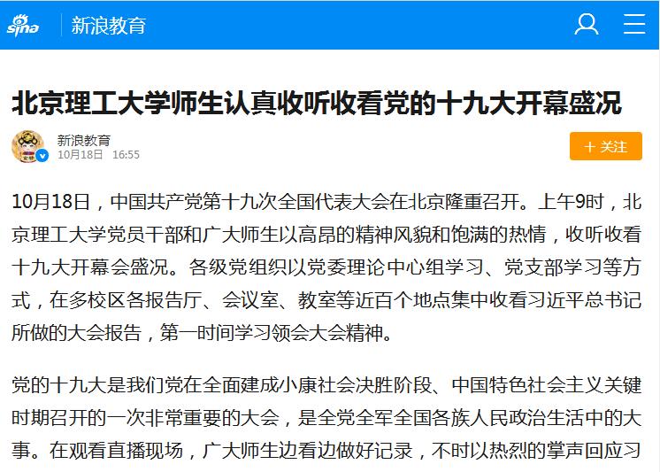 【新浪教育】冰球突破mg正规官网师生认真收听收看党的十九大开幕盛况