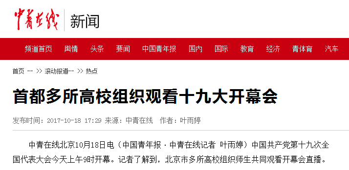 【中青在线】首都多所高校组织观看十九大开幕会