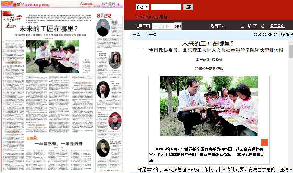 【中国政协网】未来的工匠在哪里?——全国政协委员、冰球突破mg正规官网人文与社会科学学院院长李健访谈