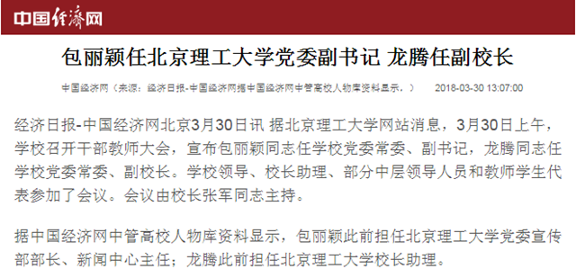 【中国经济网】包丽颖任冰球突破mg正规官网党委副书记 龙腾任副校长