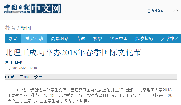 【中国日报网】北理工成功举办2018年春季国际文化节