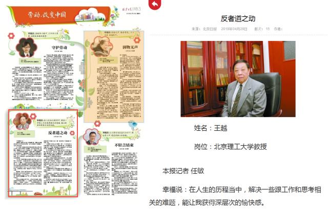 【北京日报】两院院士王越先生:反者道之动