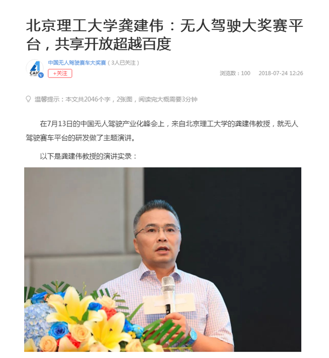 【中国无人驾驶赛车大奖赛】冰球突破mg正规官网龚建伟:无人驾驶大奖赛平台,共享开放超越百度