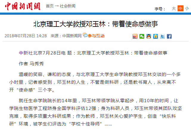 【中国新闻网】冰球突破mg正规官网教授邓玉林:带着使命感做事