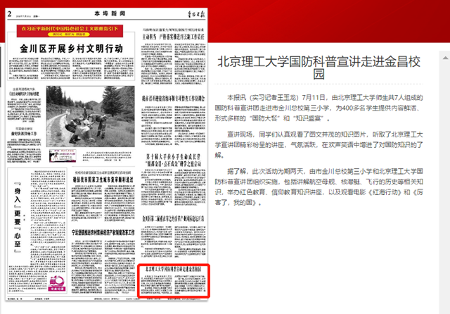 【金昌日报】冰球突破mg正规官网国防科普宣讲走进金昌校园