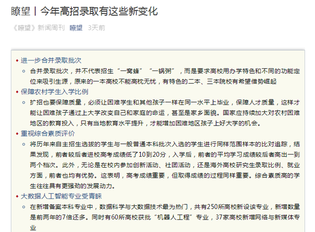 【瞭望】今年高招录取新变化