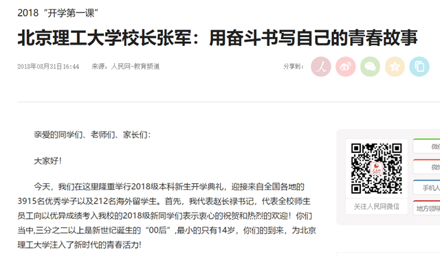 【人民网教育频道】听大学校长的“开学第一课”,这些教诲你需要谨记!