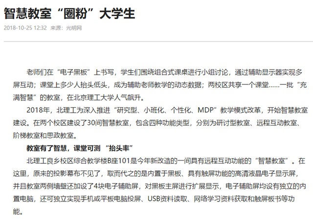 【光明网】北理工智慧教室“圈粉”大学生