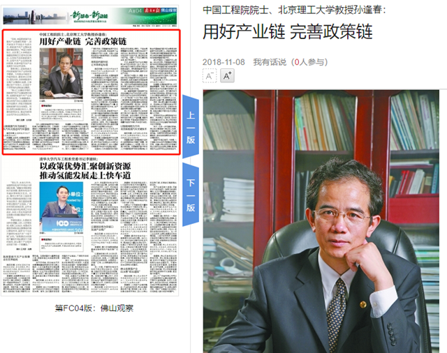 原文标题:中国工程院院士、冰球突破mg正规官网教授孙逢春:用好产业链 完善政策链