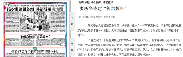 据悉,智慧教室是一种新型的教学形式和现代化教学手段,基于“互联网+”的思维模式和先进的信息技术手段,通过教学环境的重构,改变了传统课堂以教师为中心的教学模式,将教师从传统的“粉笔+黑板+PPT”的教学形态中解放出来,同时推动了教学互动中学生课堂参与率与问题解决能力的改变。目前,北京师范大学、中国政法大学、北京科技大学等学校都改建了智慧教室。
