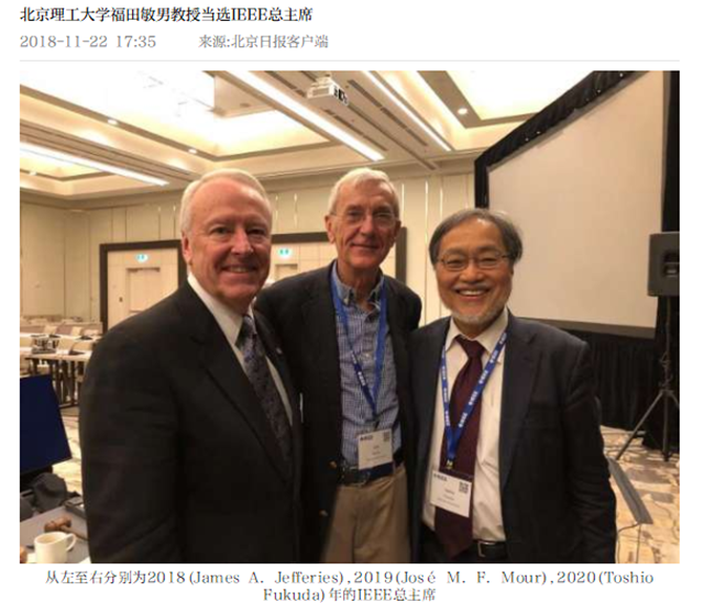 【北京日报客户端】冰球突破mg正规官网福田敏男教授当选IEEE总主席