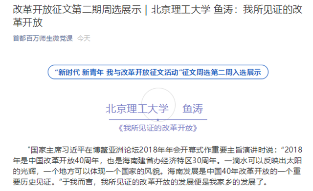 发布日期:2018-11-28 供稿:首都百万师生微党课 编辑:吴楠 审核:王征 阅读次数: