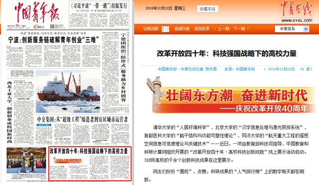 【中国青年报】改革开放四十年:科技强国战略下的高校力量