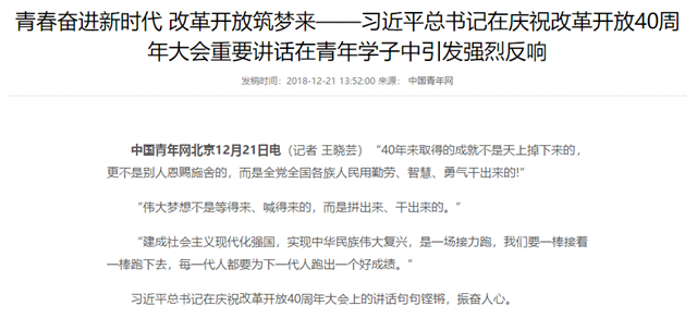 【中国青年网】青春奋进新时代 改革开放筑梦来——习近平总书记在庆祝改革开放40周年大会重要讲话在青年学子中引发强烈反响