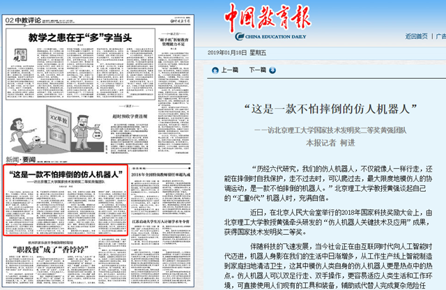 【中国教育报】“这是一款不怕摔倒的仿人机器人”