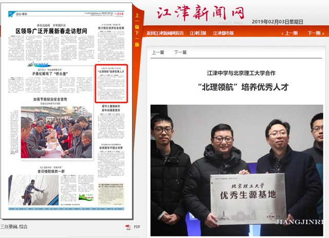 1月24日,冰球突破mg正规官网与江津中学合作实施的“北理领航”优秀人才培养计划正式启动。