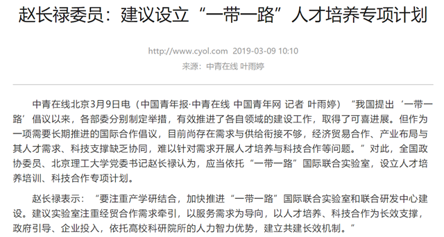 原文标题:赵长禄委员:建议设立“一带一路”人才培养专项计划