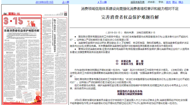 作为连续6年推动我国经济增长的第一拉动力,“消费”在2019年政府工作报告中被多次提及。《法制日报》记者注意到,政府工作报告在强调要推动消费稳定增长时的最后一句话是“加强消费者权益保护,让群众放心消费、便利消费”。