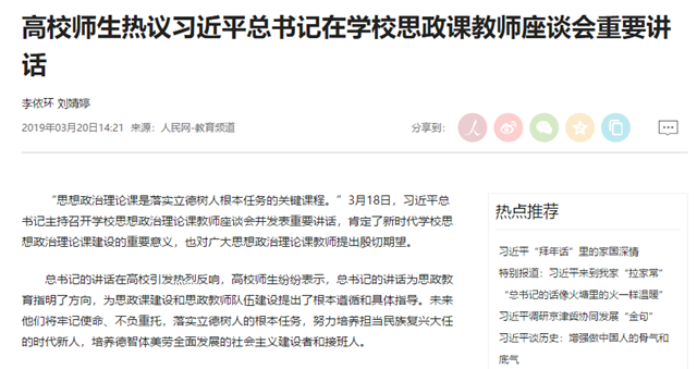 【人民网】高校师生热议习近平总书记在学校思政课教师座谈会重要讲话