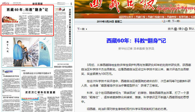 3月初,从事西藏陆地生物多样性保护利用与发展研究40年的刘务林研究员,获西藏自治区科学技术杰出贡献奖。这是西藏自治区设立科学技术奖以来,首次评选杰出贡献奖,奖金额度为100万元。