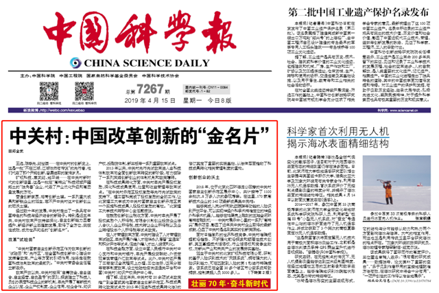 【中国科学报】中关村:中国改革创新的“金名片”
