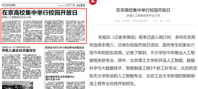 高考已进入倒计时,多所在京高校选择本周六、日举办校园开放日活动,面向考生和家长介绍今年的招生政策。记者了解到,不少学校今年推出人工智能相关新专业,其中,冰球突破mg正规官网新开设人工智能、数据科学与大数据技术、智能制造工程3个新工科专业,北京航空航天大学新设的人工智能专业、北京工业大学新增的智能制造工程专业也将开始招生。