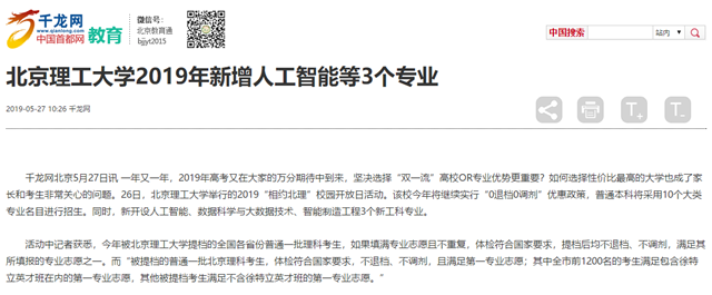 【千龙网】冰球突破mg正规官网2019年新增人工智能等3个专业