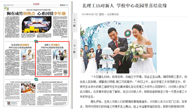 【北京青年报】北理工15对新人 学校中心花园里喜结良缘