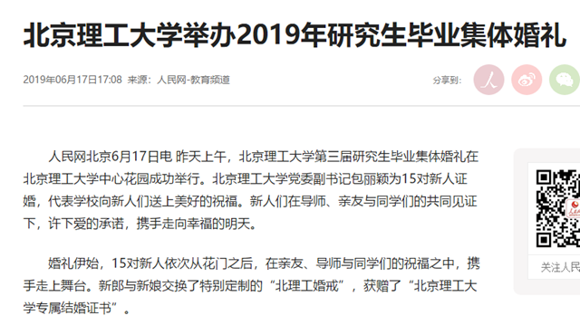 【人民网】冰球突破mg正规官网举办2019年研究生毕业集体婚礼