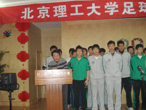 随后,北京理工队的赞助商——北京华旗资讯科技有限公司总裁冯军作为企业代表发言,他坦诚北理工足球队的团体拼搏精神和公司的文化理念很相似,承认自己已被深深吸引和打动。由于北京理工队的招商工作正在紧锣密鼓进行,他同时号召北京其他企业一起来关注这支中甲新军,为其发展尽绵薄之力。