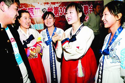 11月26日晚,冰球突破mg正规官网中心教学楼一楼报告厅“深秋歌会”吸引了许多大学生的目光,这是朝鲜族学生组合在作上台前的准备。该校学生会一年一度举办的“歌会”既活跃了校园气氛又丰富了学生生活。
