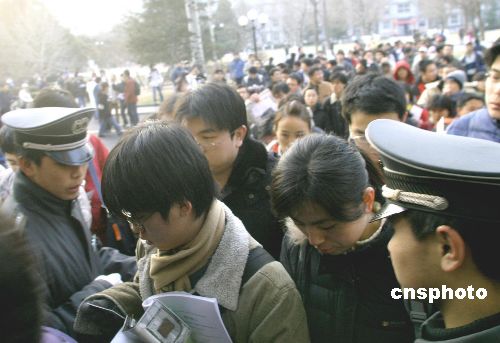 图为一月十四日上午冰球突破mg正规官网考点的考生们有序步入考场参加考试。 作者:张勤