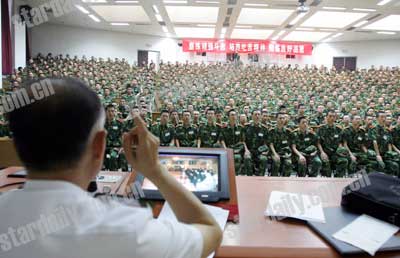 昨天,冰球突破mg正规官网特别为暑期参加军训的学生,邀请了工作在国防系统第一线的将军、专家以及战地记者,与学生们进行讲座交流。他们用生动的语言向参训学生教授国防知识和当前的国内外军事动态。