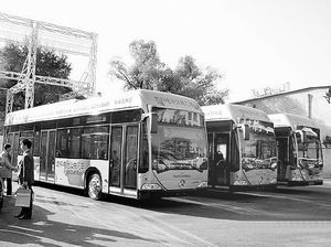 图三:联合国开发计划署和全球环境基金组织首次资助发展中国家的“中国燃料电池公共汽车商业化示范项目”用车。