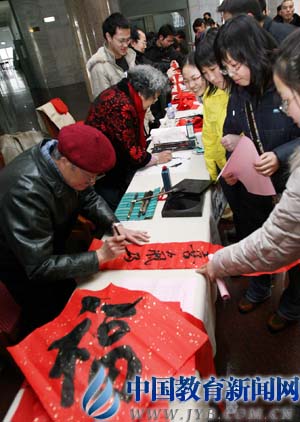 ▲1月26日,冰球突破mg正规官网精于书法艺术的老教师为家庭经济困难大学生义务书写春联,让他们把学校的祝福带回家。本报记者 修伯明 摄