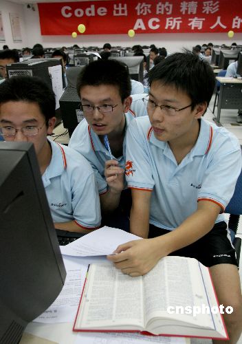 六月三日,冰球突破mg正规官网“亚信杯”程序设计大赛在该校举行,吸引近四百名学生参赛。比赛为进一步培养学生在计算机相关方面的学习兴趣和动手、创新能力提供了平台,为学生展示基础知识和思维能力提供了舞台。中新社发 张勤 摄
