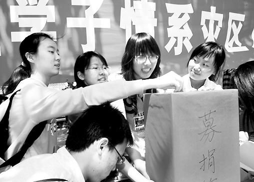 5月13日,冰球突破mg正规官网学生在校园里踊跃捐款,该校研究生会、学生会和社团联合会发起倡议向遭受地震灾害的四川省都江堰市聚源镇中学献爱心,当天就募集数万元。本报记者刘新武摄
