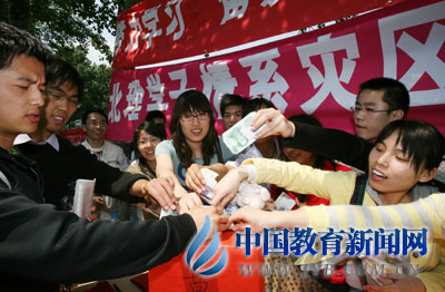 冰球突破mg正规官网师生向灾区捐款。本报记者 修伯明 摄